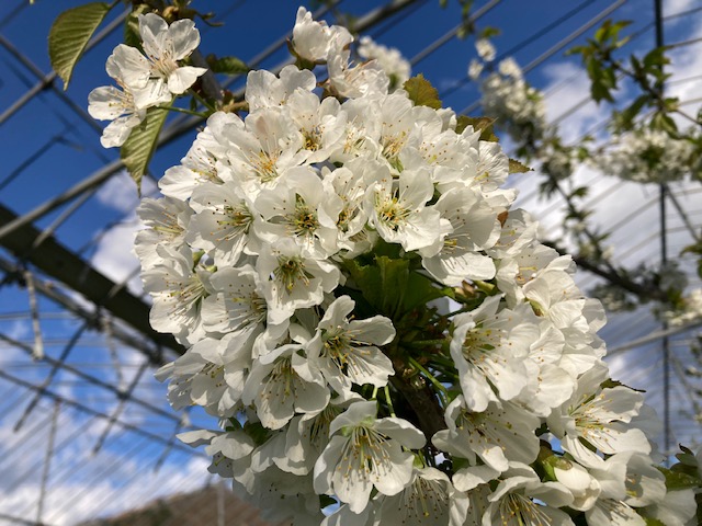 果樹生育状況 やまがた紅王が満開を迎えました。佐藤錦は3分~5分程度 で品種によって開花期に違いがあります。霜害の情報も 入って来ていますが当園ではここまで霜害は免れています。 ラフランスなどの西洋梨も間もなく満開を迎えようとして います。気温も高く、訪花昆虫の動きも若干見られ空気乾燥 はしていますが受粉環境はまずまずです。